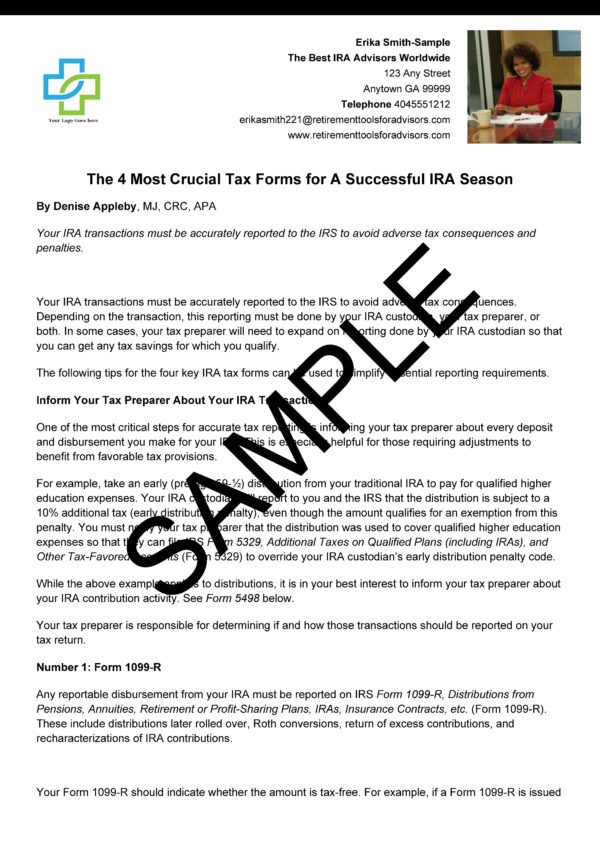 A client-facing letter about four key tax forms that are used for reporting IRA transactions.